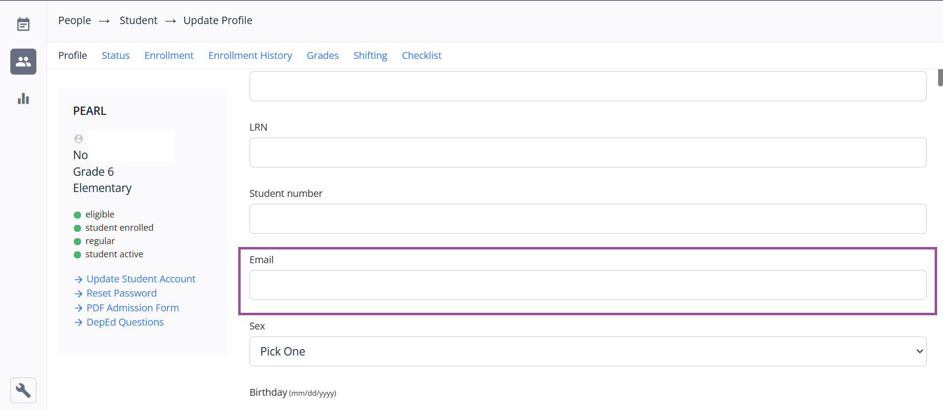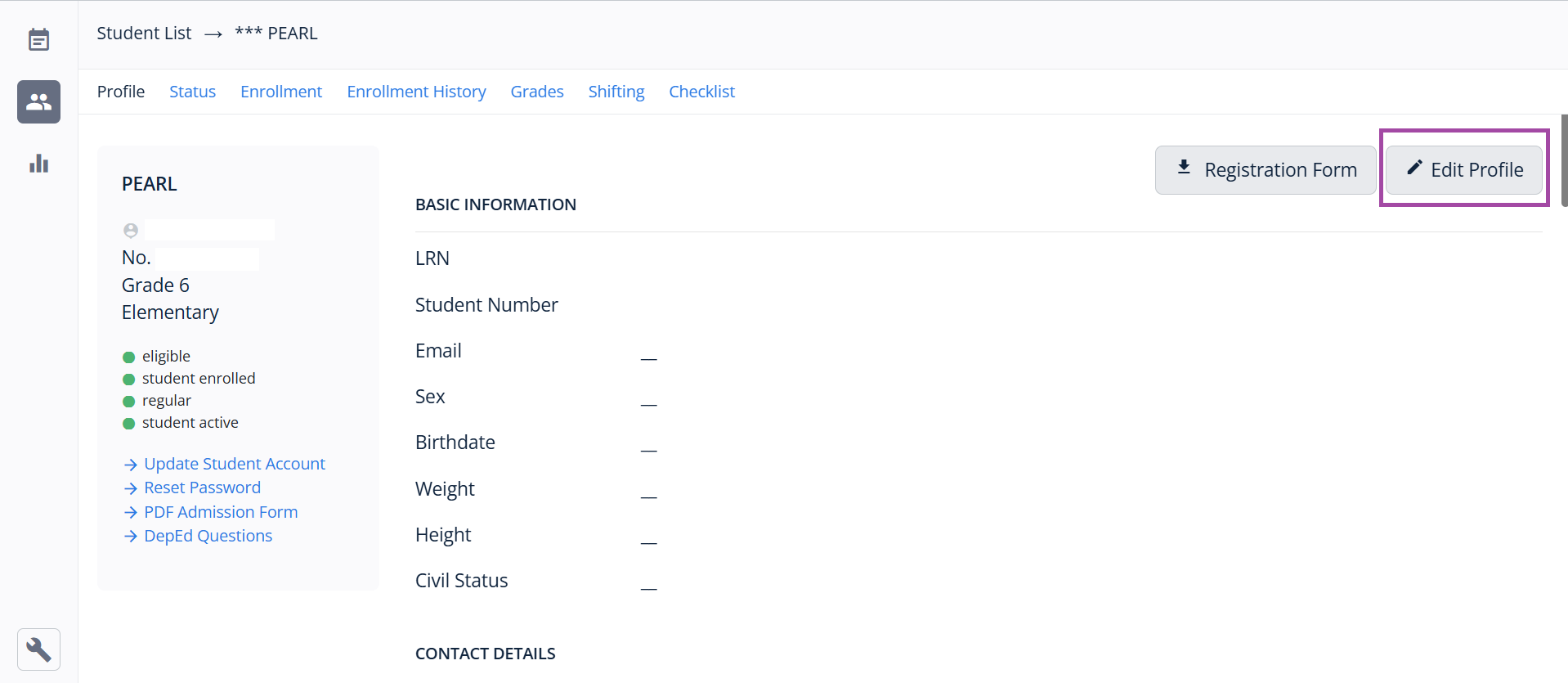 3. Edit the Student Profile.