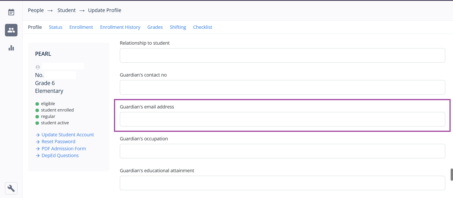 3.  Optional: Scroll down to locate the Guardian's Email Address