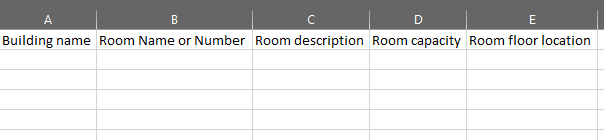 Upon opening the CSV template for bulk uploading rooms, you will see the following headers: